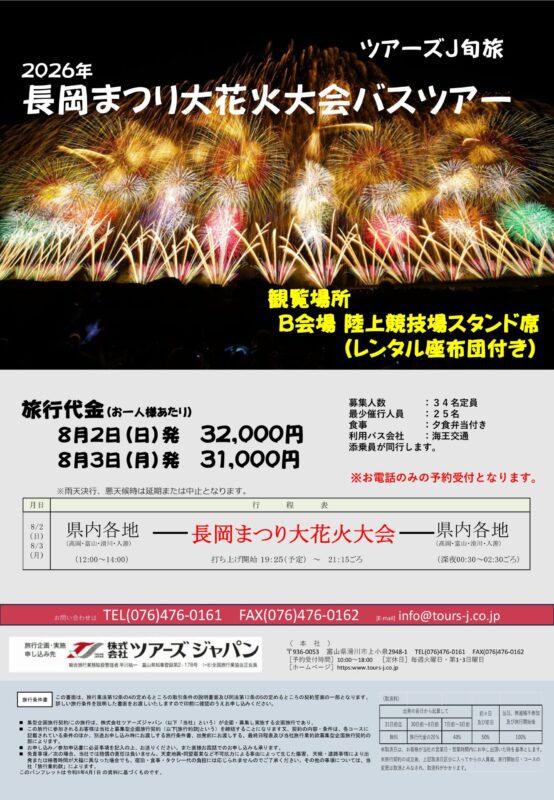 2026年長岡まつり大花火大会バスツアー【8月2日(日)発・8月3日(月)発】の発売日が決定しました。